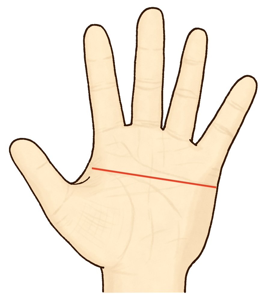 ますかけ線は、感情線と知能線が一本につながり、手のひらを横断している線のこと。