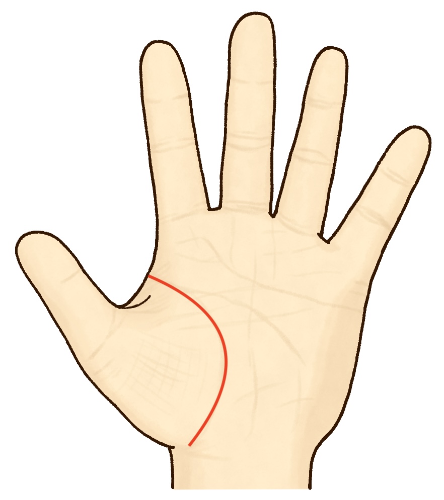 親指と人差し指の間から、大きくカーブして伸びる線。